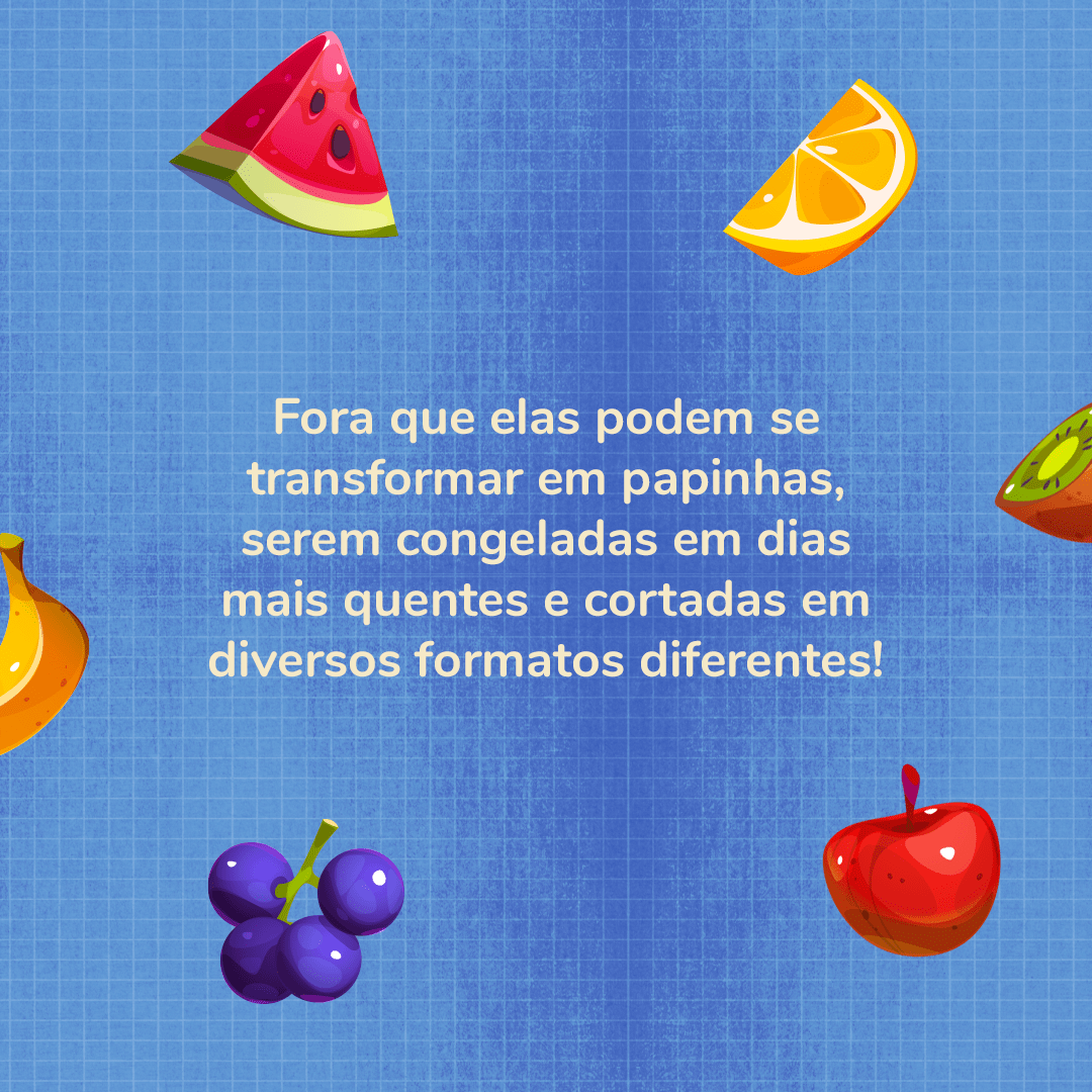 Eu sou apaixonado por frutas e desde de pititico a minha mamãe me apresentou várias frutinhas diferentes! A minha preferida do momento é a banana! E por aí, qual a fruta favorita do seu nenê?