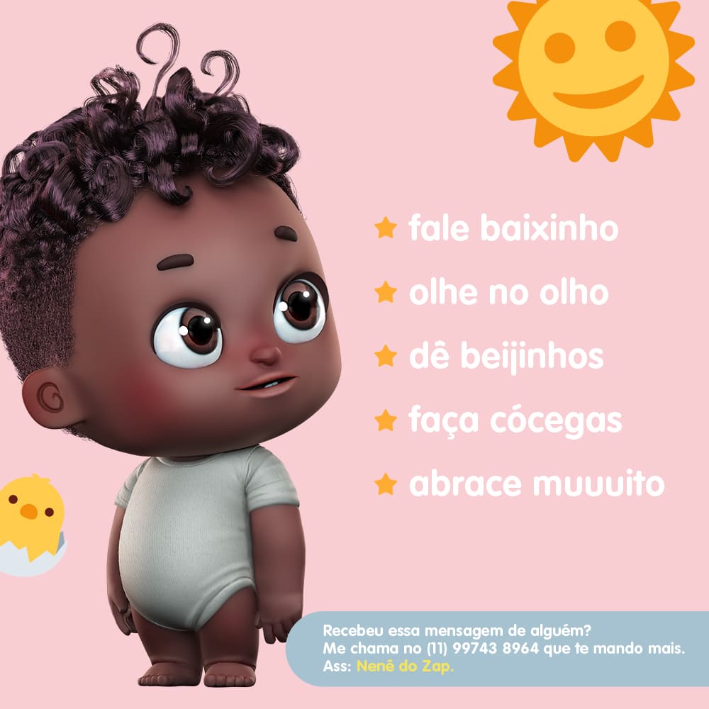 Um pouco a mais de incentivo não faz mal a ninguém, né? Muito menos pro seu nenê! Então, fale baixinho, olhe no seu olhinho, dê muitos beijinhos, faça cosquinhas, abrace muuuuito e demonstre todo o seu carinho! Vou até cantar uma musiquinha pra esse seu momento: "abraços e carinhos e beijinhos sem ter fim..."