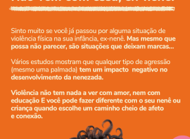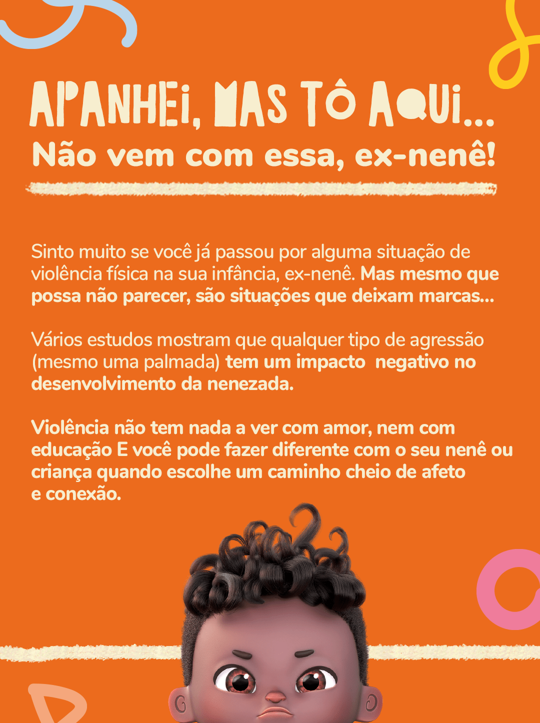Papo sério, se você passou por situações de violência física na infância e conseguiu seguir em frente, não é por isso que o seu nenê ou criança precisa passar por isso também, tá? A conversa é e sempre será o melhor caminho!