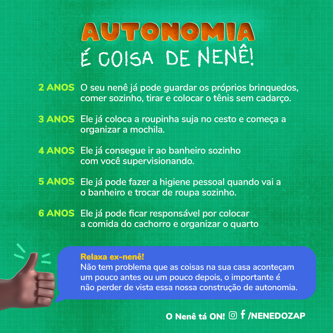 Fala Ex-nenês! Aqui na minha casa, a rotina já mudou, daqui a uns dias eu vou pela primeira vez para a escola e os meus papais me disseram que eu estou ficando grandinho e posso ajudar em algumas tarefas e assim ninguém fica cansado! ?