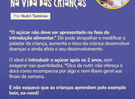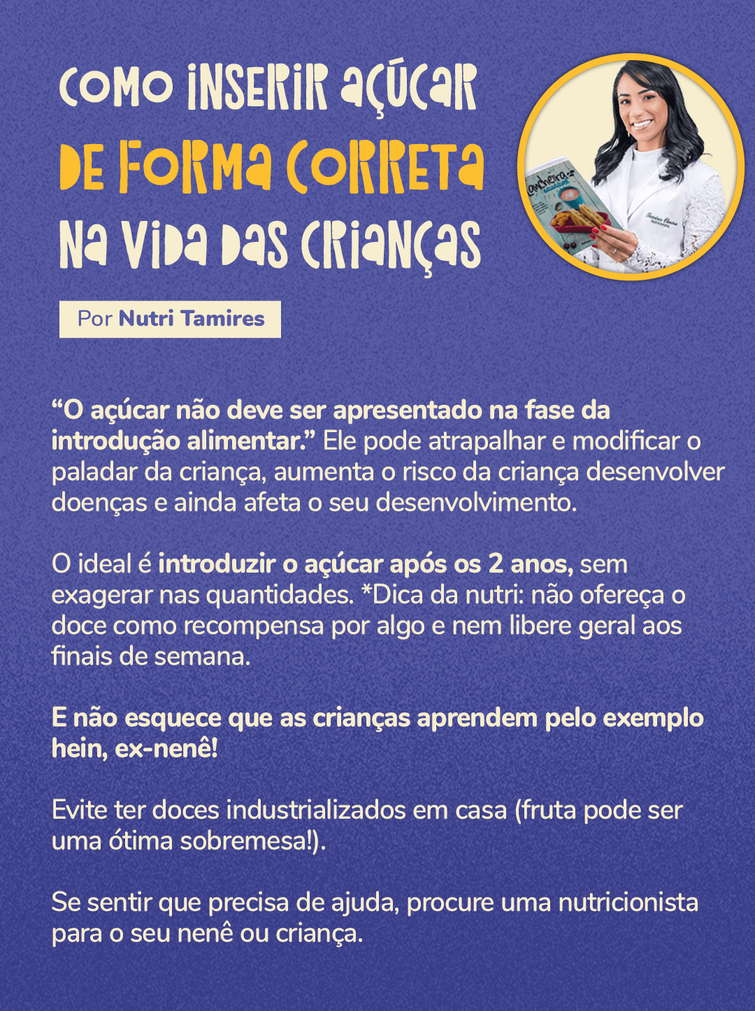 Oi, ex-nenês! Vocês estavam com saudade da minha amiga Nutri Tamires Oliveira? Pois, ela está de volta! E me falou um pouquinho sobre como introduzir o açúcar na vida das crianças da forma certa!
