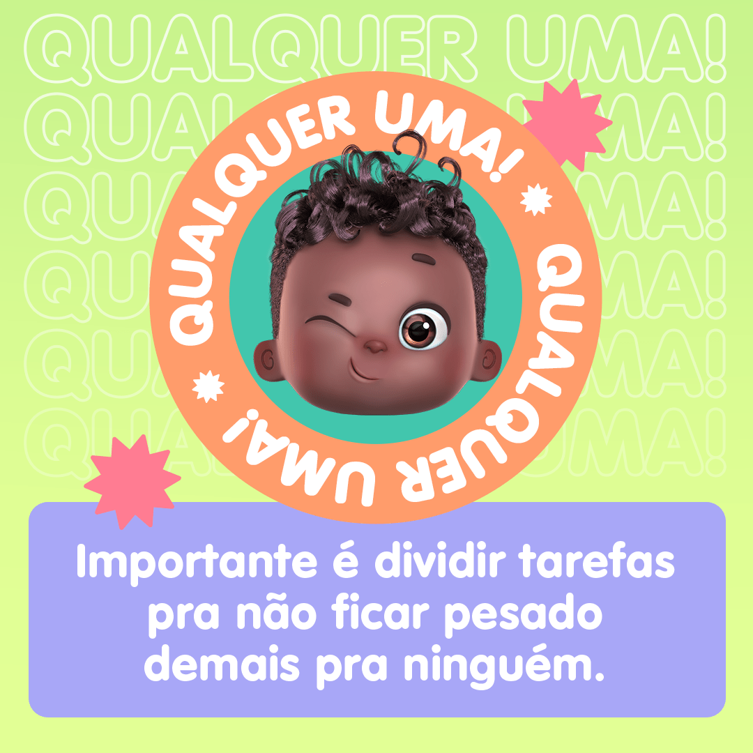 Tem gente que é melhor em dar banho ou em preparar a papinha ou até em ninar o nenê. Conversem e, com carinho, vejam que tarefa cada um gostaria de assumir. Isso vai ajudar na hora de dividir as funções, porque nenê dá um trabalho, né!