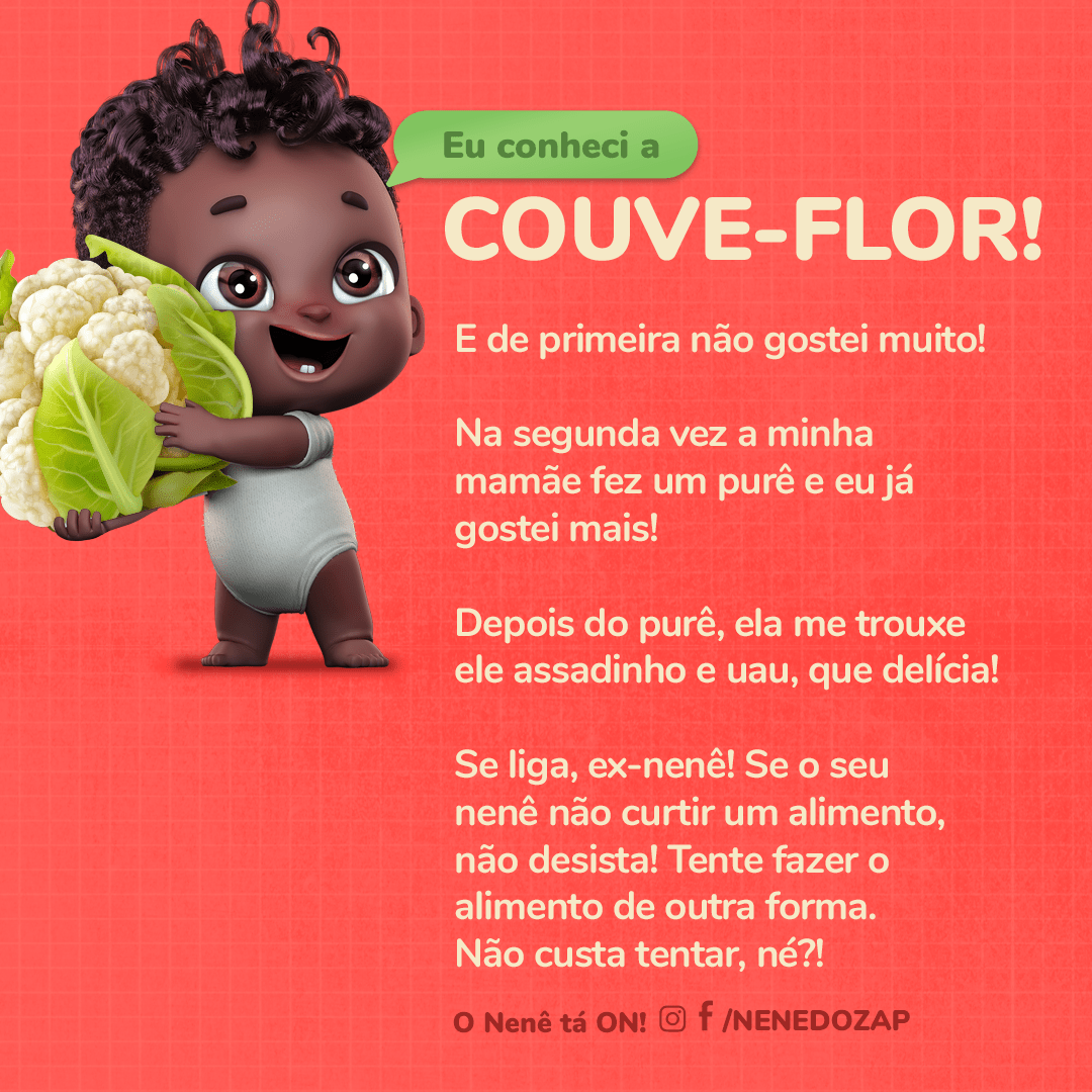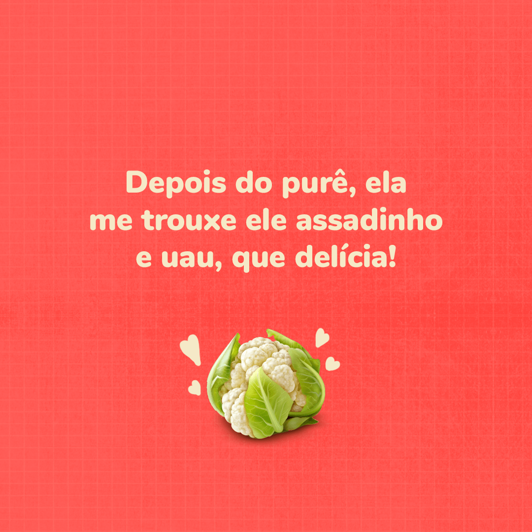 Oi ex-nenês! A cada dia que passa eu descubro um alimento novo! E esse processo é tãããão legal! Adoro provar comidinhas novas e a minha mamãe é a rainha de fazer os alimentos ficarem gostosos!E essa foi a vez da Couve-flor!