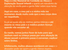 18 de maio é o Dia Nacional do Combate ao Abuso e Exploração Sexual Infantil e nós não podemos ficar quietos diante de tantas coisas ruins que acontecem. Vamos conversar sobre isso?