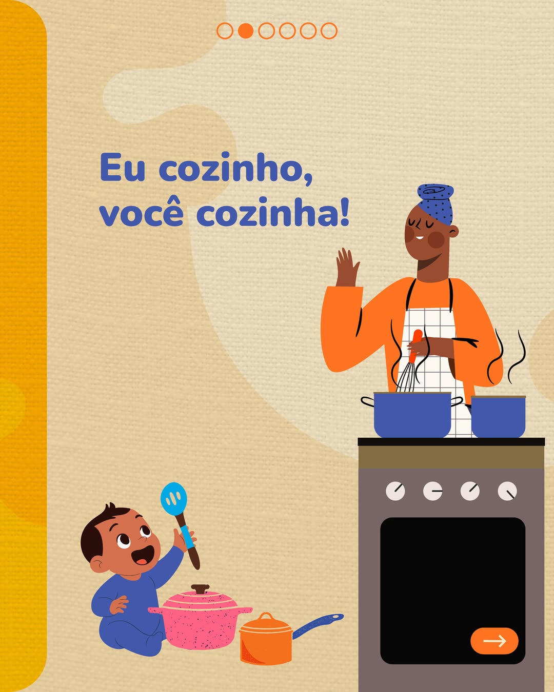 Ex-nenê, não tô dizendo que é fácil e simples, e muito menos que funciona todas as vezes. Mas, de maneira geral, a nenezada adora imitar os adultos e fazer as mesmas coisas que eles estão fazendo. Então, quando estiver no sufoco e sem ajuda, experimente brincar com os pequenos de ajudantes na cozinha, na limpeza e no que mais precisar. Pode ser um momento divertido que cria conexão, ensina e ainda dá conta da uma tarefa.