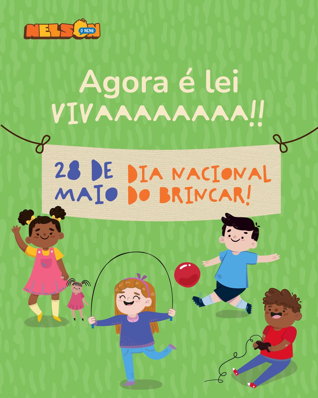 Nacional do Brincar, comemorado em 28 de Maio, virou lei! Isso é muito legal, gente, porque é uma maneira de reconhecer pra todo mundo que brincar é, sim, muuuuito importante pra nenezada. Tomara que cada vez mais e mais pessoas se sintam tocadas por esse assunto, protejam nossos momentos de brincadeiras e defendam uma infância saudável e feliz.
