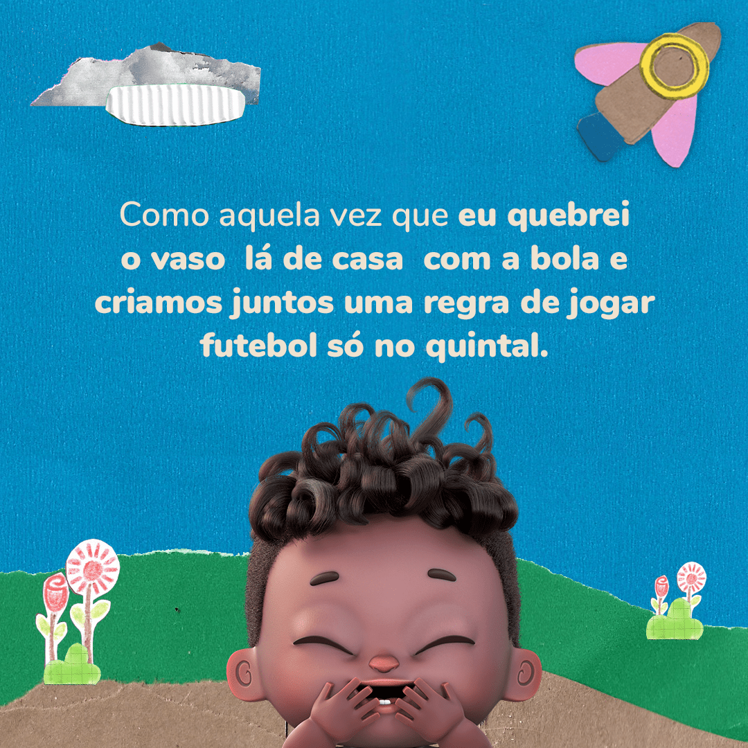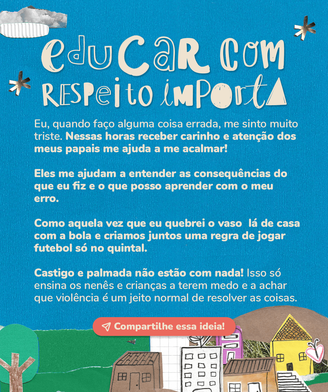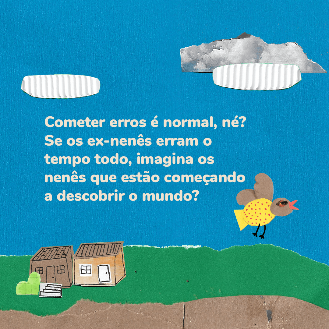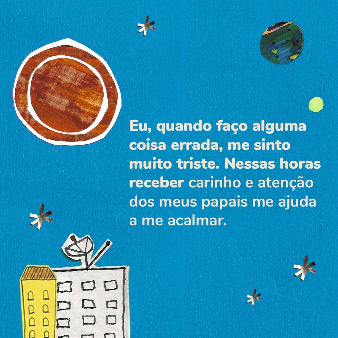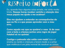 Oi, ex-nenês! Sabe uma das coisas que eu acho mais legal nos meus papais? É que até na hora que faço alguma coisa errada eles me ensinam com carinho. Sem grito, sem castigo... Por que eles sabem que todo mundo erra, inclusive eu! Então, sempre que eu faço algo que não pode, eles conversam comigo e me mostram o porquê de não poder fazer isso.