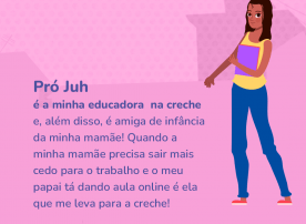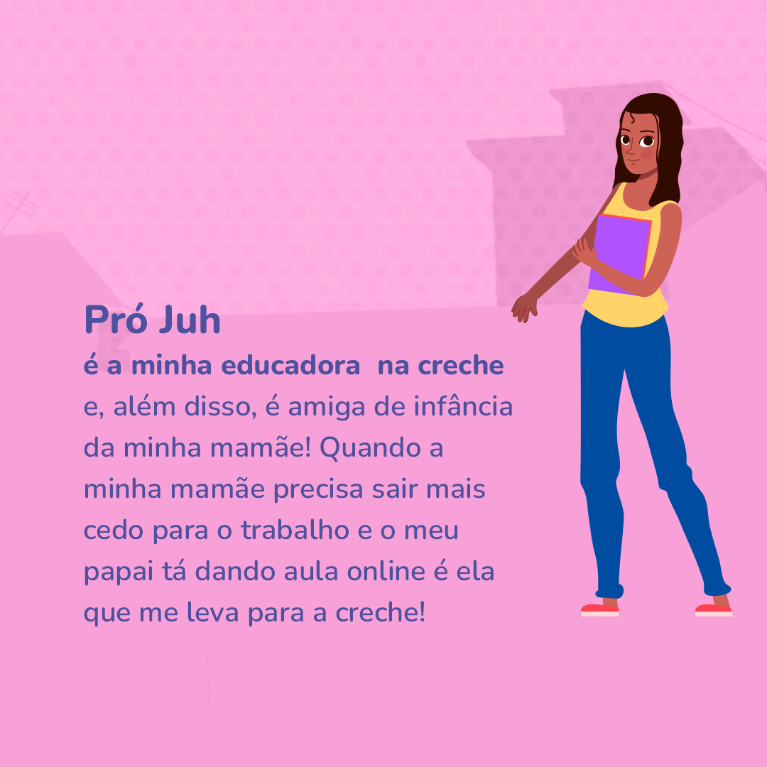 A minha mamãe é cercada de muito amor e muuuuuito apoio! Seja para conversar ou ajudar nos cuidados comigo, ela pode contar com várias pessoas para garantir que eu fique seguro no dia a dia! Legal, né? Eu queria que todo mundo tivesse rede de apoio!