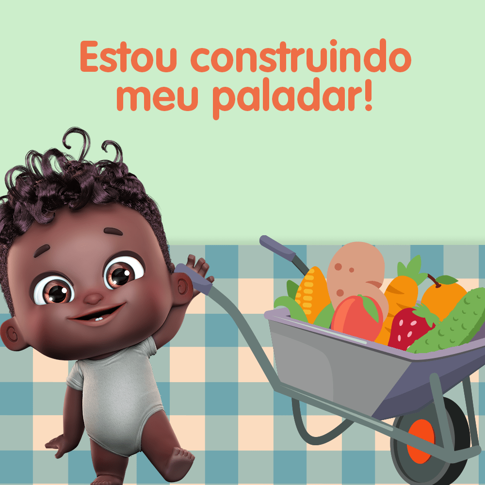 Estou construindo meu paladar! Na hora da introdução alimentar, é importante que os ex-nenês vão me apresentando gradualmente as comidinhas mais saudáveis para eu crescer gostando do que me faz bem. É só não esquecer de colocar paciência e muito amor na receita!