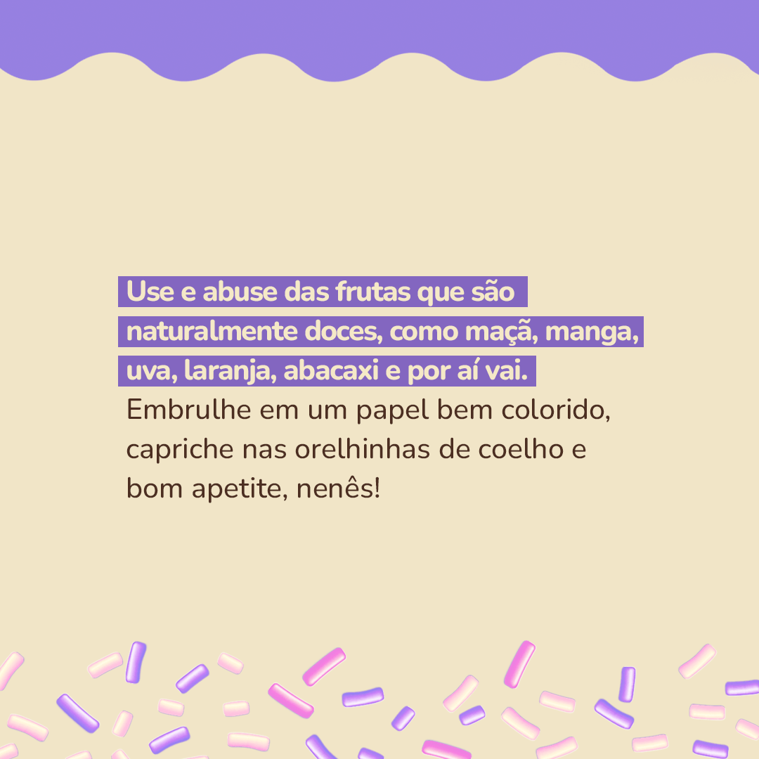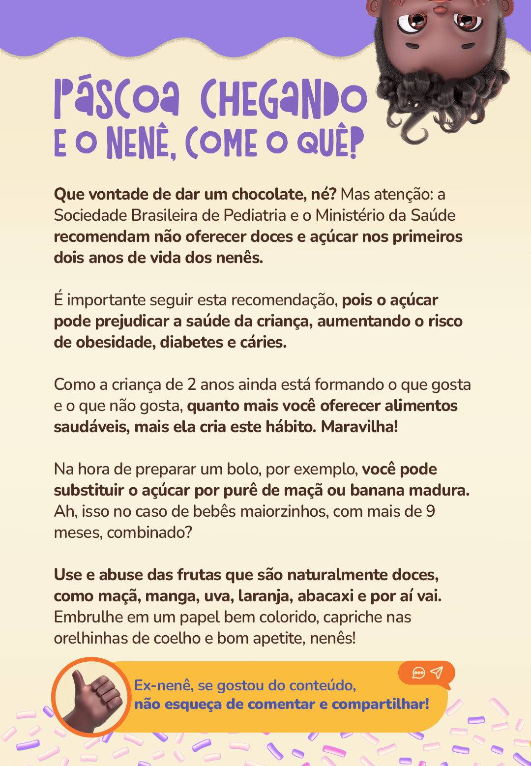 Os meus pais seguem a recomendação de oferecer chocolate só a partir dos 2 anos… E eles tão certos, né? Mas isso não significa que os nenês não podem ter uma Páscoa bem docinha… Olha só!
