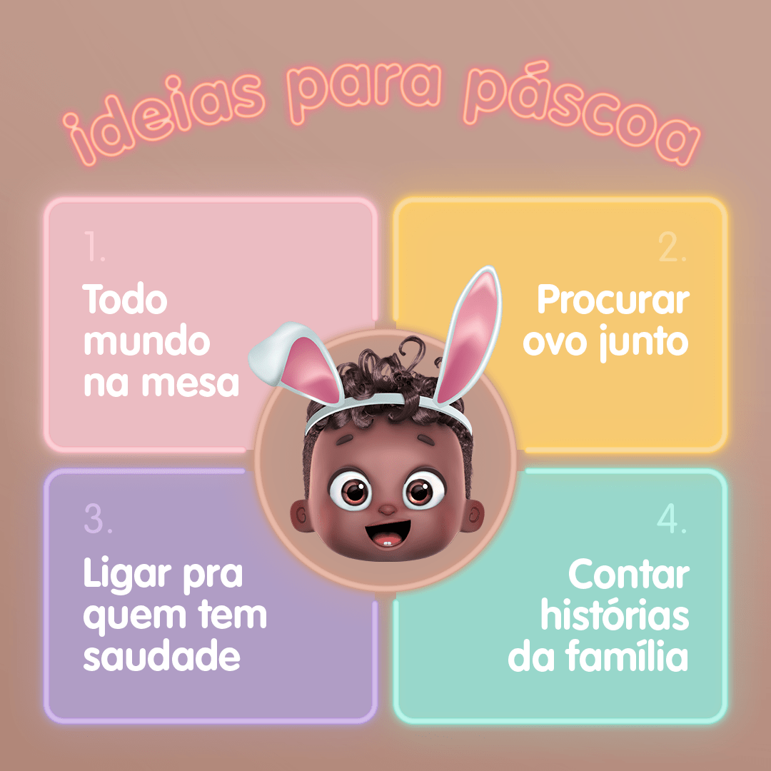 Nessa Páscoa ainda não vai dar pra ver a vovó, as tias, os primos e um monte de gente. Vai ser só com quem mora na sua casa.