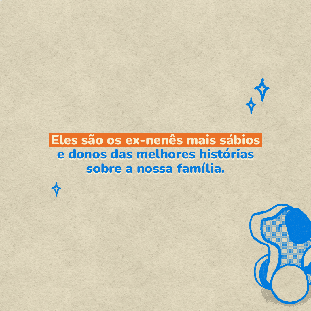 Ex-nenês! Vocês sabiam que o dia 26 de Julho é Dia dos Avós? Pois fiquem sabendo hahahaha E eu tirei o dia todinho para ficar com o meu vô Nelson! E olha, não existe pessoa mais sabida que ele! Em uma horinha ele já me contou boa parte da história da nossa família e eu fiquei com os olhinhos brilhando e cheio de vontade de contar essas histórias para mais gente! Nossos avós são a nossa conexão direta com as memórias da nossa família, já pensaram nisso? Então, assim que puderem corram pra dar um beijinho bem gostoso nos seus avôs e avós, tá? Não percam tempo!
