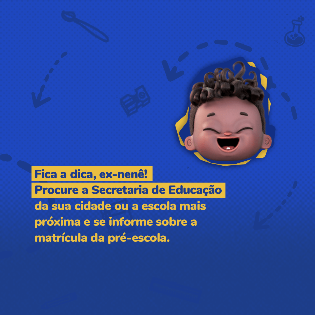 Oi, ex-nenês! A criança na pré-escola bate um bolão e ainda se aquece pro futuro. Então, não deixem de matricular seus filhos, tá? Corre para a Secretaria de Educação da sua cidade ou para escola mais próxima para se informar sobre como agilizar a matrícula da sua criança! #CriançaNaPréEscolaÉGol