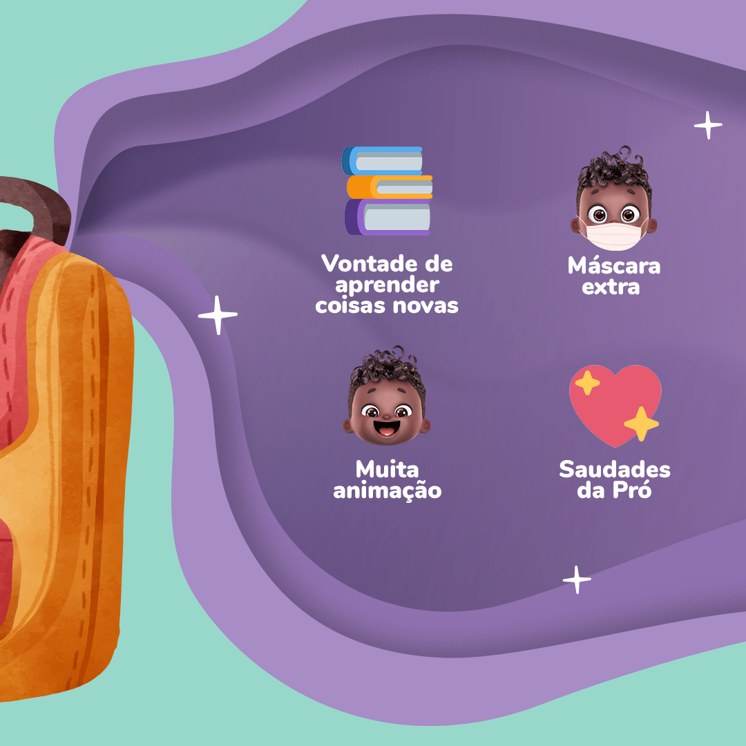Tá na hora, tá na hora ? Tá na hora de voltar ? Quem aí está empolgado para voltar pra escola? Eu já estou com a mochila arrumada. Mas pra ficar 100% preparado, o seu nenê tem que fazer como eu, e não esquecer de levar: máscara extra (que toda criança a partir de 2 anos tem que usar), a saudade dos coleguinhas, vontade de aprender coisas novas e, com certeza, muita, muita animação!